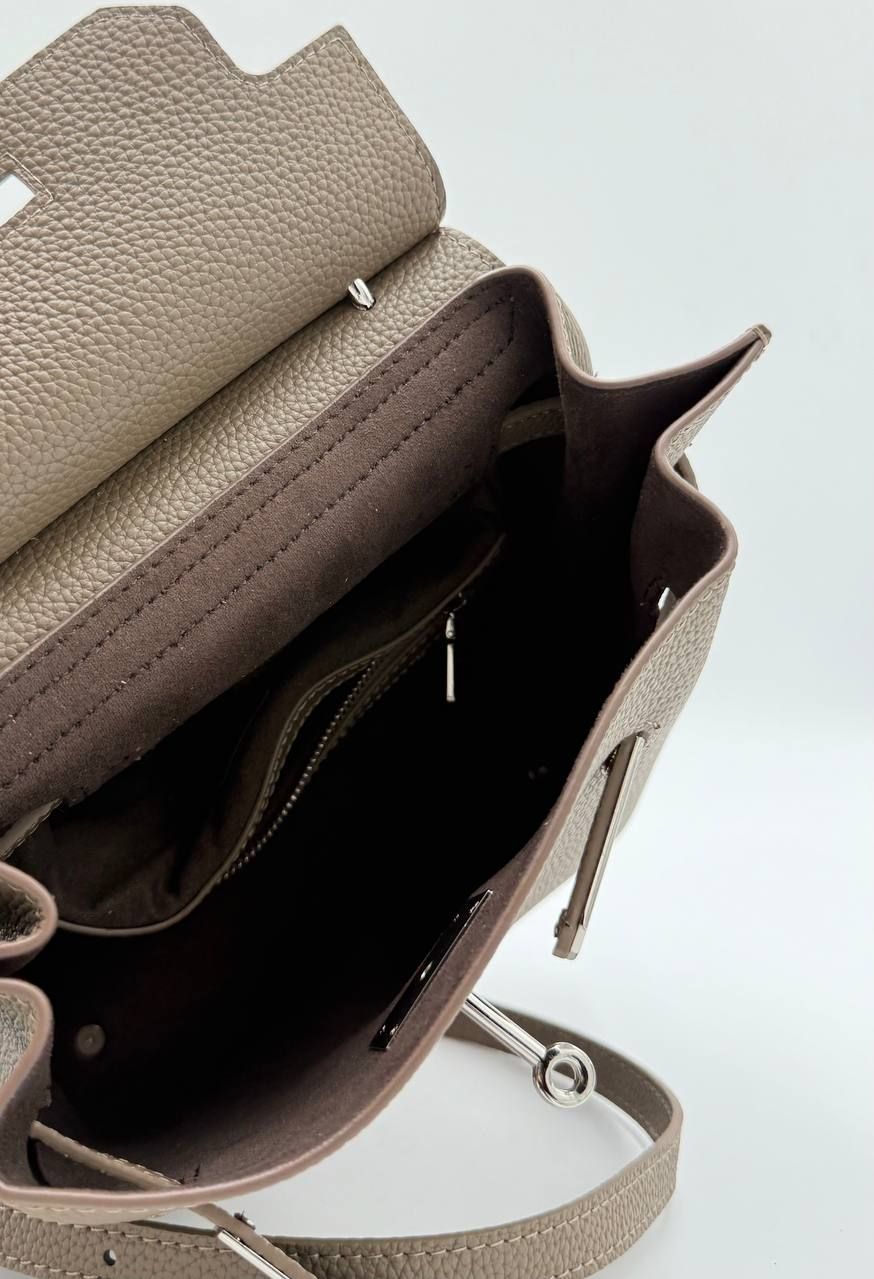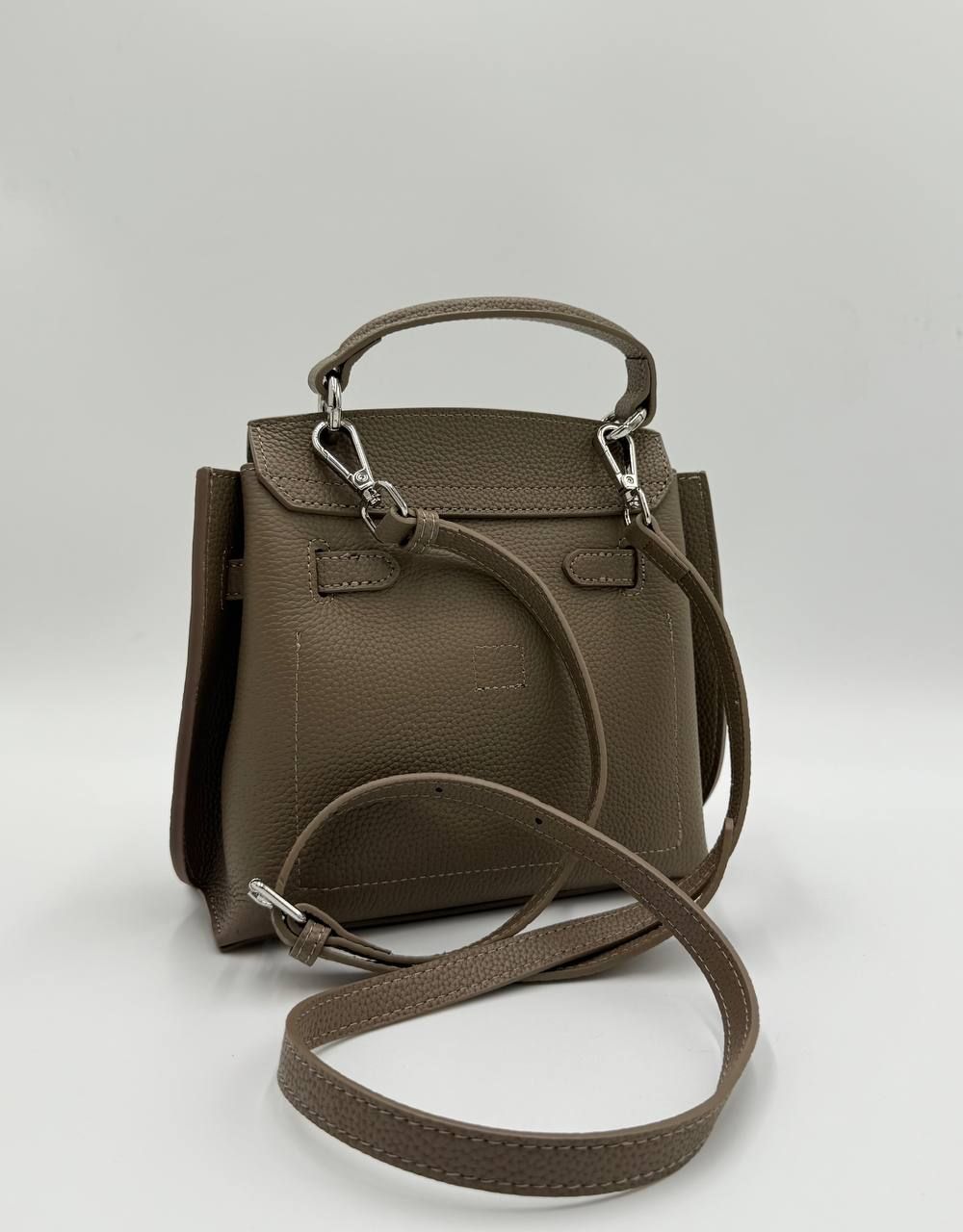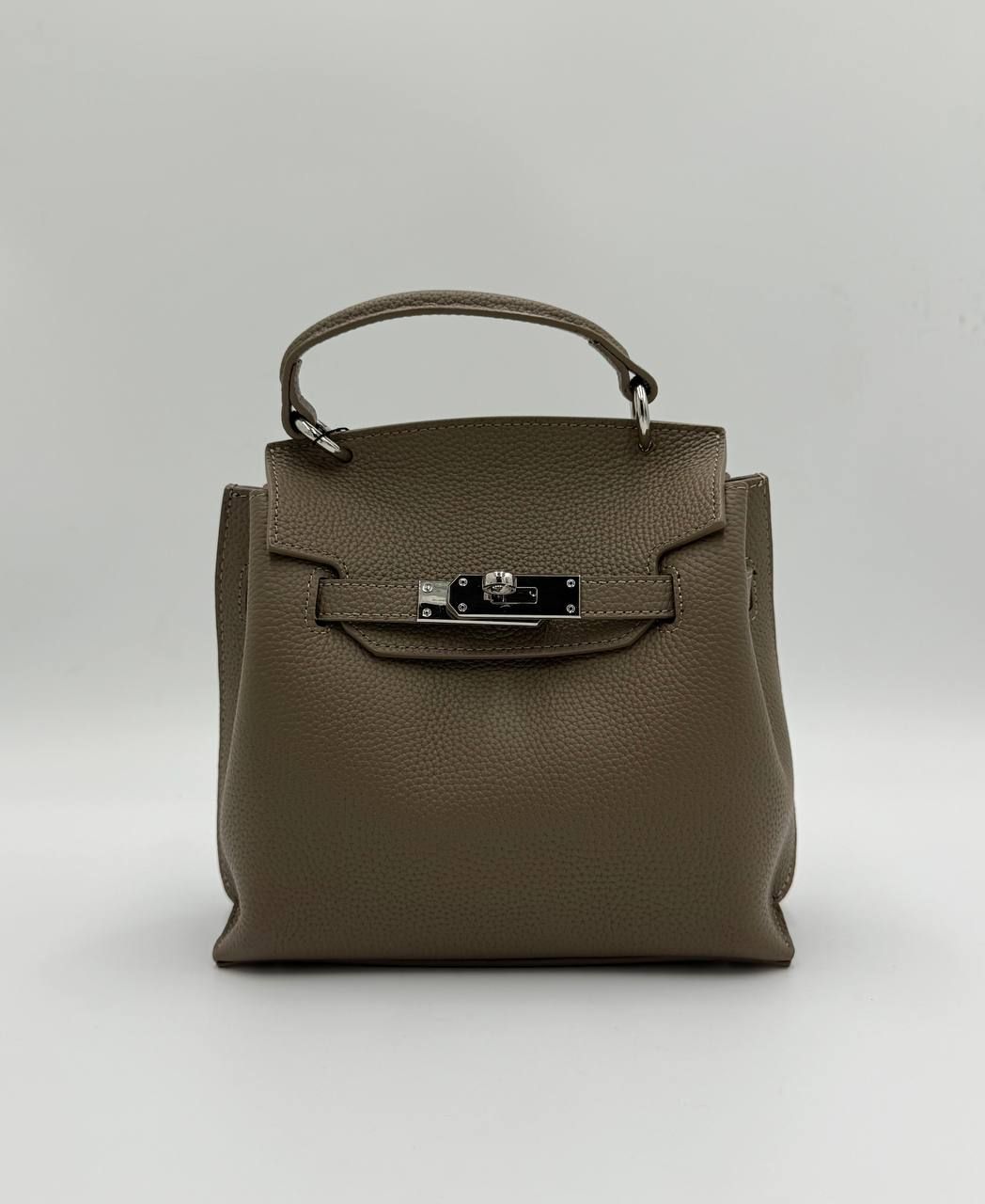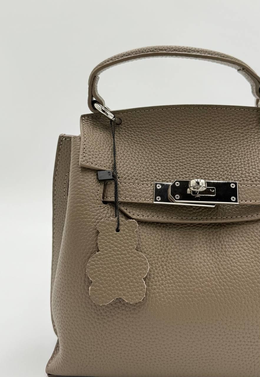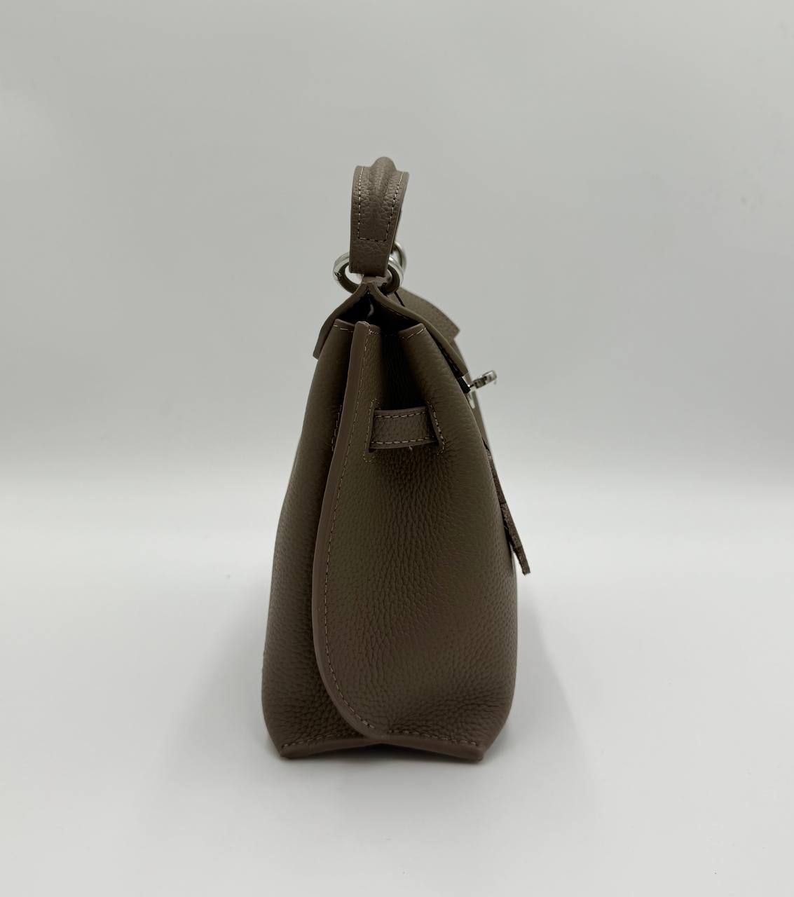 Элегантная женская сумка в стиле Kelly — изящный цвет Тауп и безупречная форма. Эта модель в популярном оттенке Taupe (серо-коричневый) — идеальный баланс между классикой и современными трендами. Сумка имеет жесткий каркас, позволяющий ей сохранять идеальную форму, и выполнена из качественной зернистой кожи. Благодаря универсальному цвету, она легко комбинируется с любой палитрой вашего гардероба.