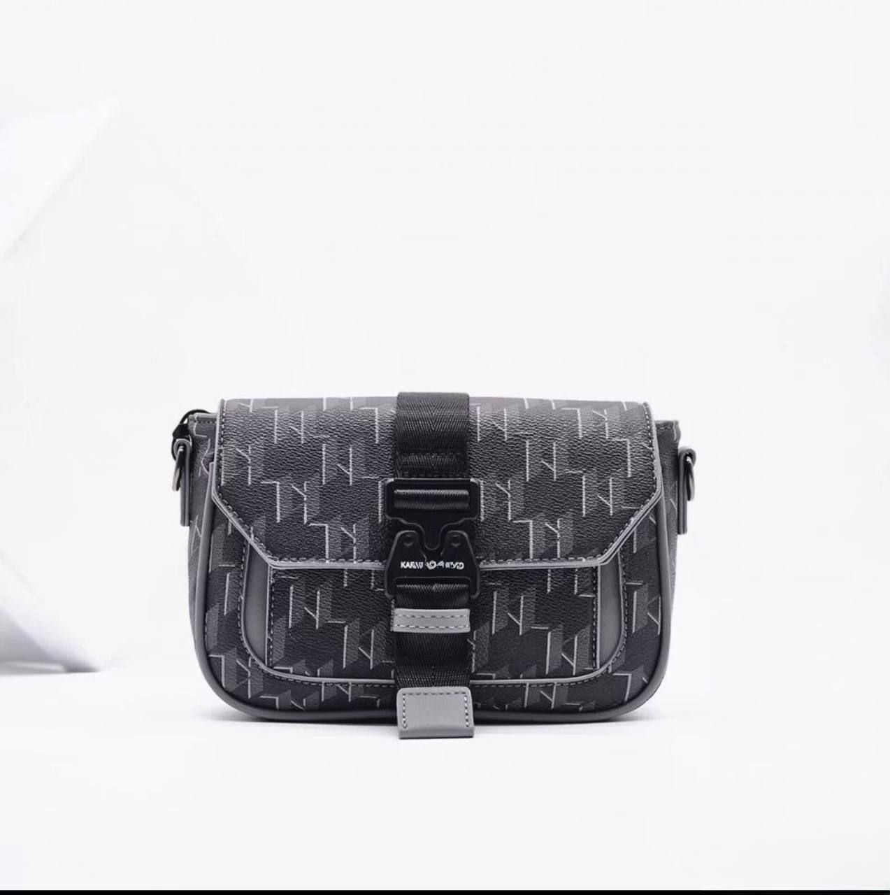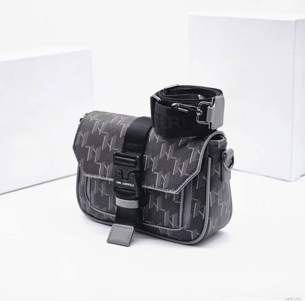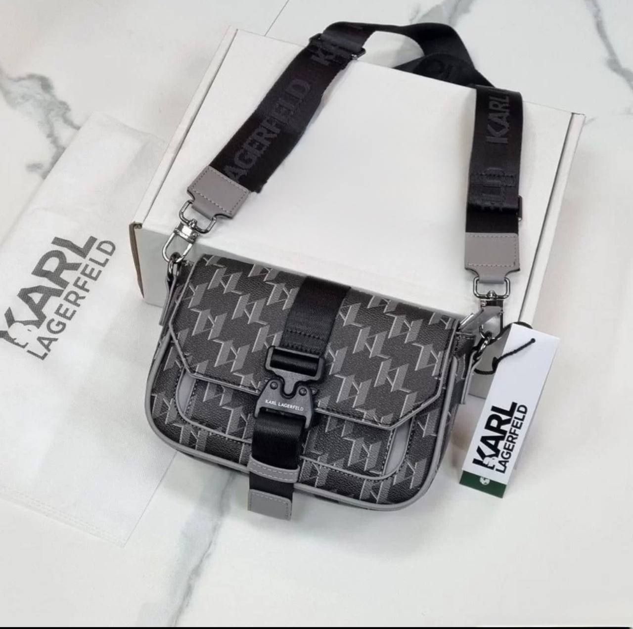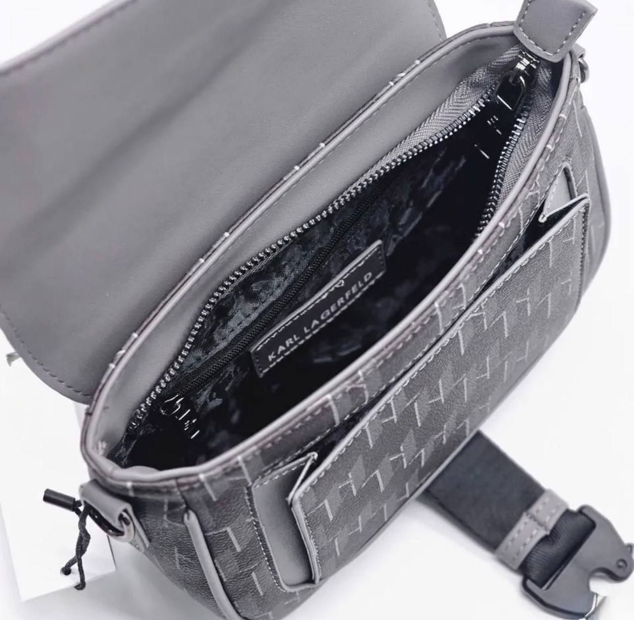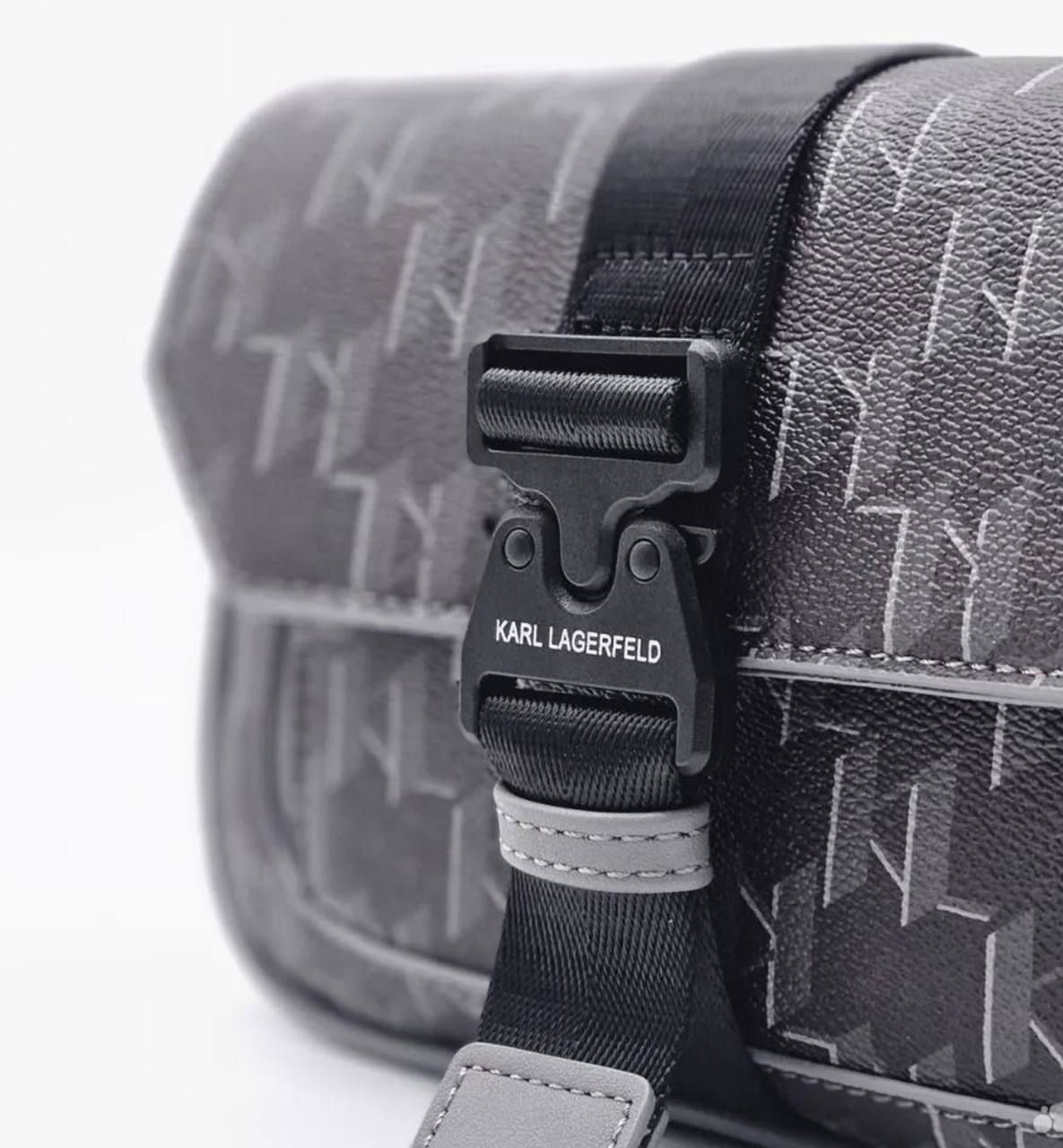 Ця модель Messenger Bag у кольорі Dark Grey/Black — це універсальний аксесуар, який легко адаптується під будь-який гардероб. Поєднання холодного сірого відтінку з контрастними чорними деталями та перфорованим логотипом KARL LAGERFELD робить її справжнім об'єктом дизайну.