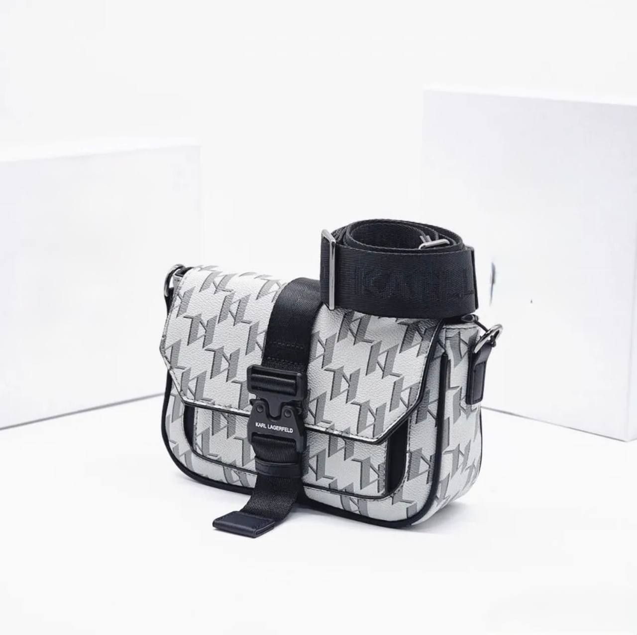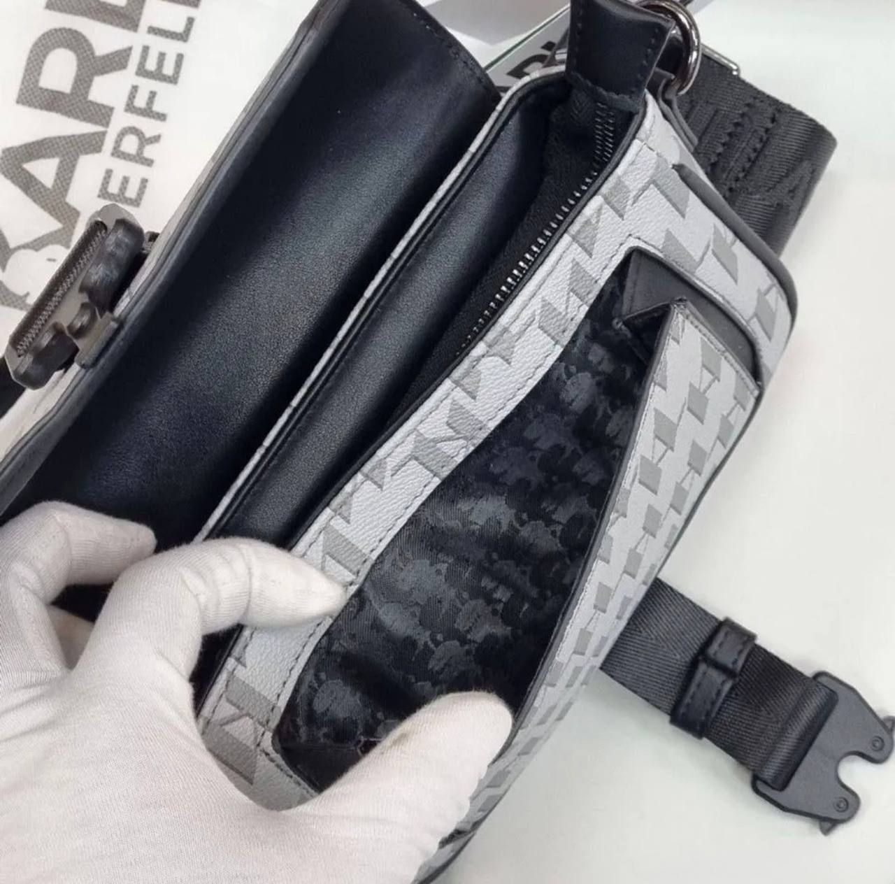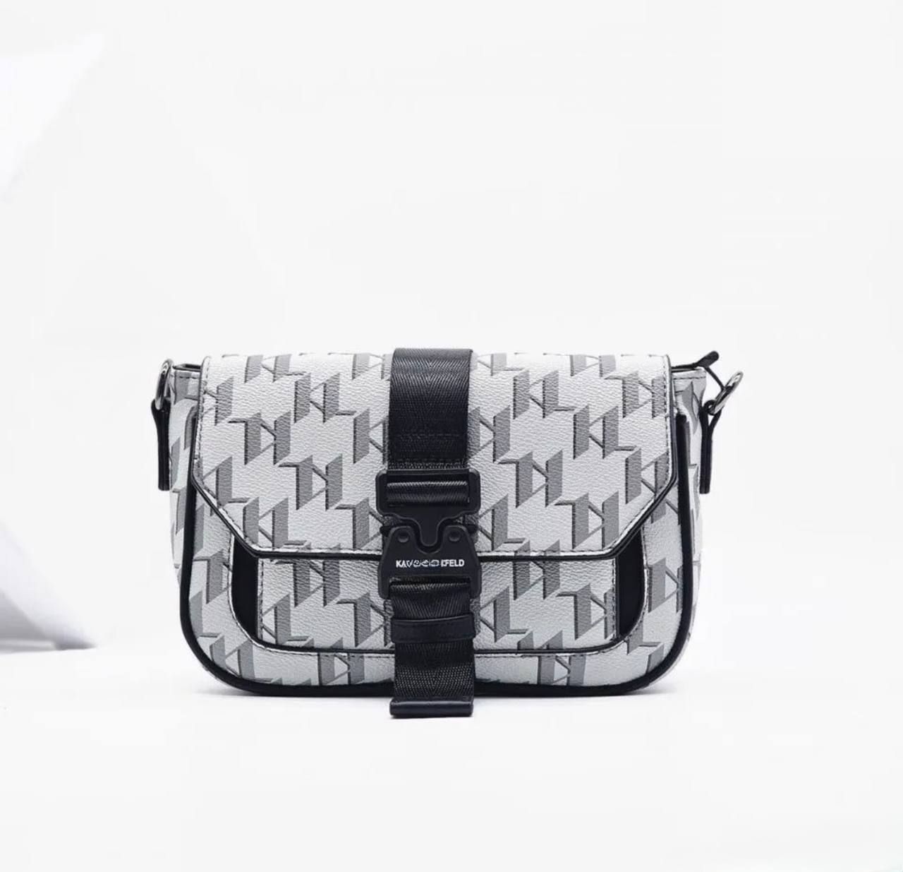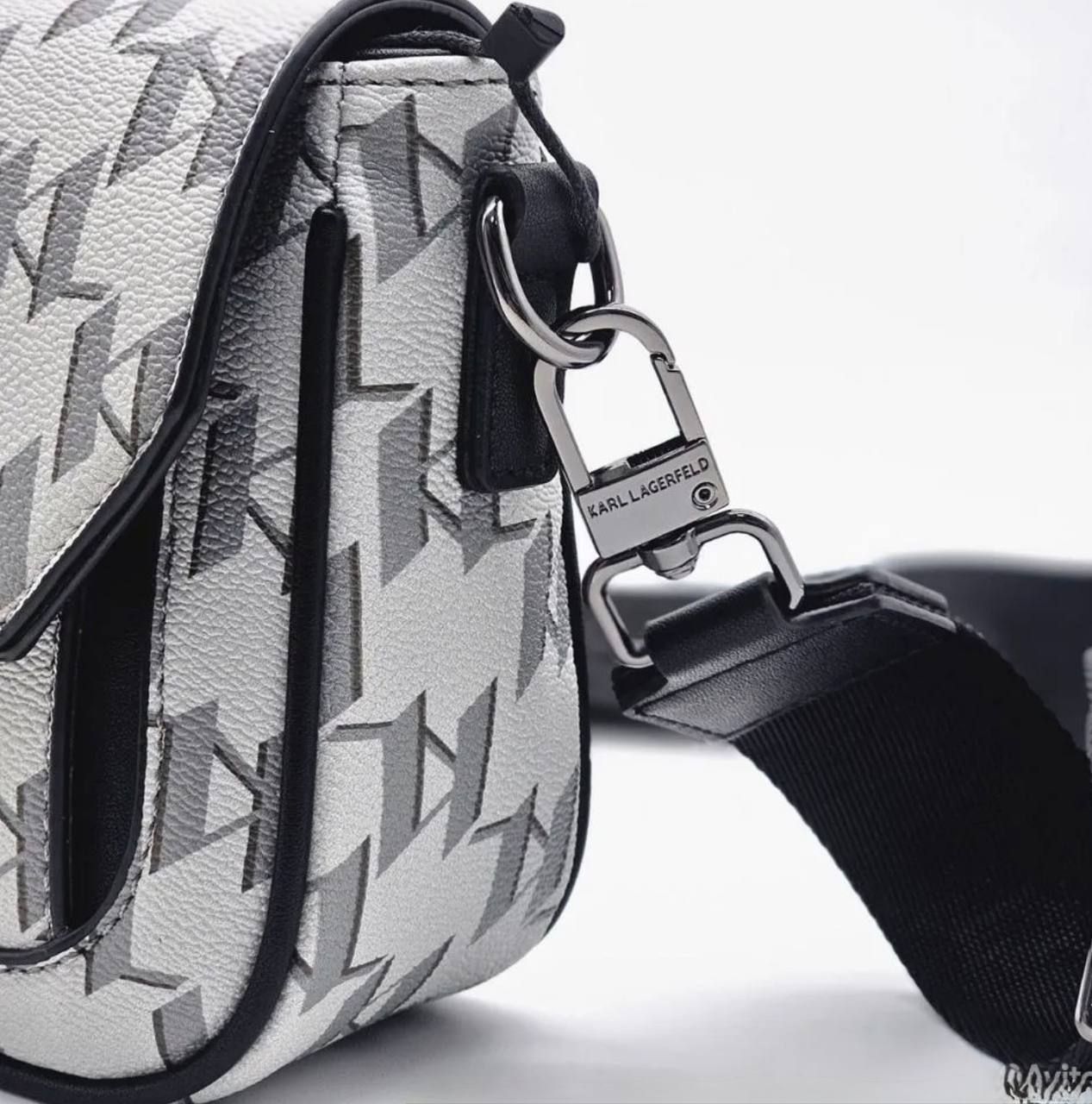 Ця модель Messenger Bag — втілення сучасного мінімалізму. Головною фішкою є перфорований логотип KARL LAGERFELD на передній панелі, що створює об'ємний ефект та робить сумку впізнаваною без зайвих деталей. У світлому виконанні модель виглядає особливо витончено та дорого.